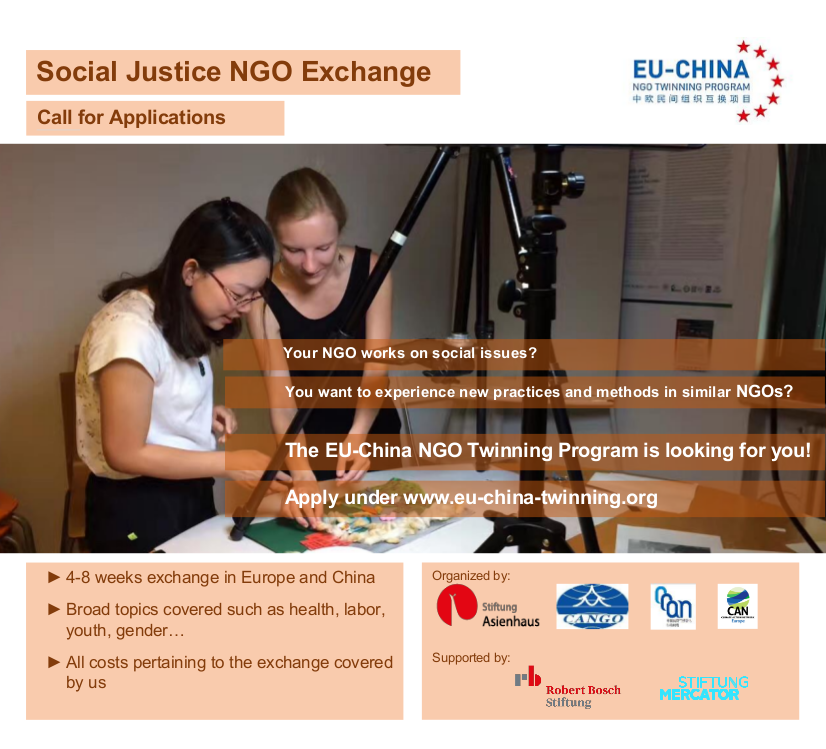 We are starting to look for new applicants for the 2019-2020 EU-China NGO Twinning Program!